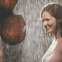 The two exchange brief words and then Mary Jane peels down Spidermans